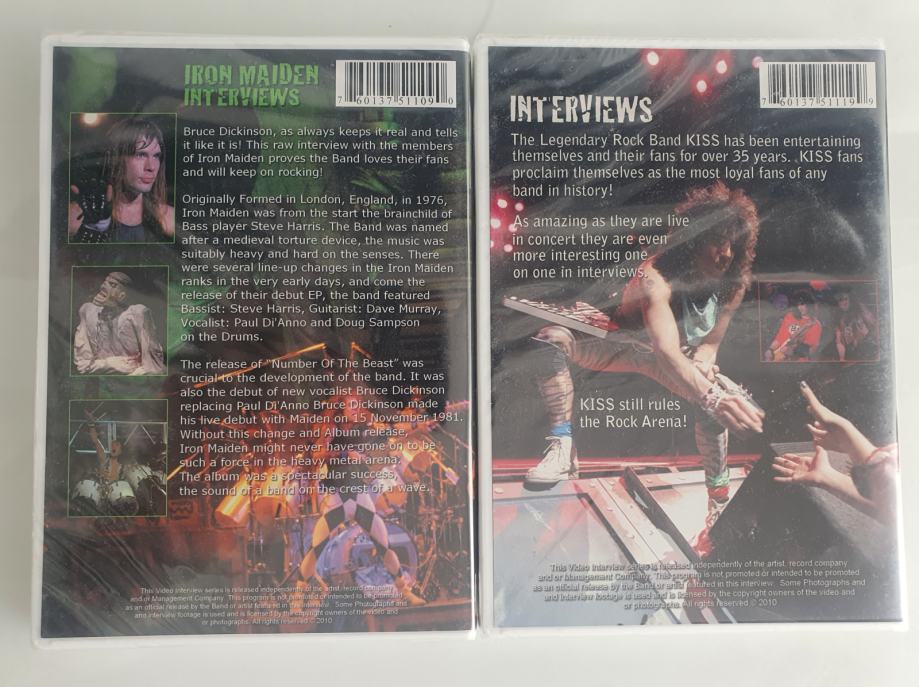 Prodajem ova dva neotvorena DVD-a intervjua s članovima legendarnih Maidena i Kissa. Dušu dali za sve prave fanove ta dva benda! Cijena fiksna, zamjene me ne zanimaju. Mogu poslati unutar teritorija RH ako se dogovorimo. Kontakt samo putem Njuškalo poruka.