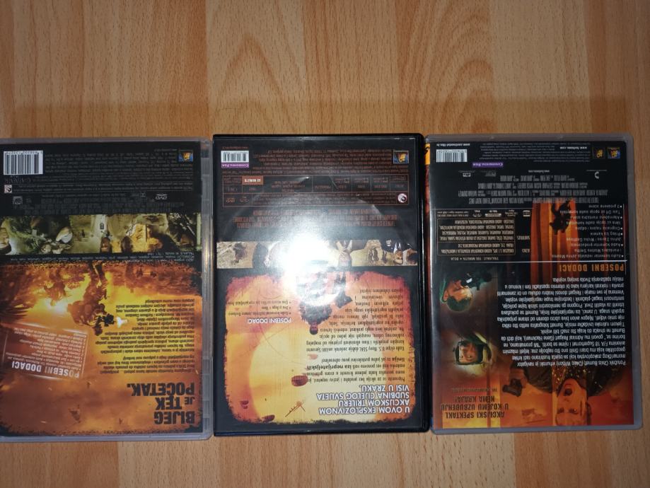 Prodajem samo u kompletu. Cijena 20 € plus slanje. Preferiram slanje sa Tiskom. Može I zamjena ali samo za sljedeće Dvd filmove: Moj prijatelj willy 2, Cover up, Zmajev most i Delta Force, 10 razloga zašto te mrzim. Upiti preko Njuškala ili Viber ili Whatsap na broj mobitela 098 9263446.