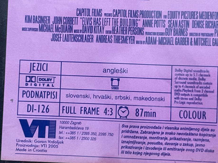 Kim Basinger DVD Elvis (ni)je tu = Elvis Has Left The Building (2004.)
