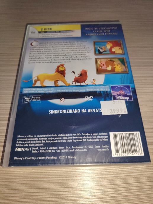 Prodajem novi DVD Kralj lavova, Disneyev animirani klasik u žanru fantazije. Radi se o Dijamantnom izdanju koje je sinkronizirano na hrvatski jezik. DVD je neotpakiran i dolazi u originalnoj foliji.