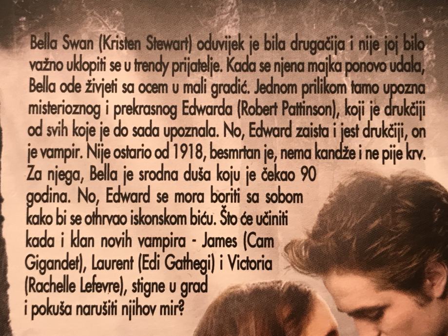 Ljubavna priča između djevojke i besmrtnog vampira, prema istoimenom hit romanu S. Meyer