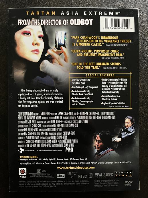 Prodajem kultni film korejskog režisera Park Chan-Wooka LADY VENGEANCE na DVD-u (Tartan Asia Extreme Edition) s engleskim prijevodom i titlovima.