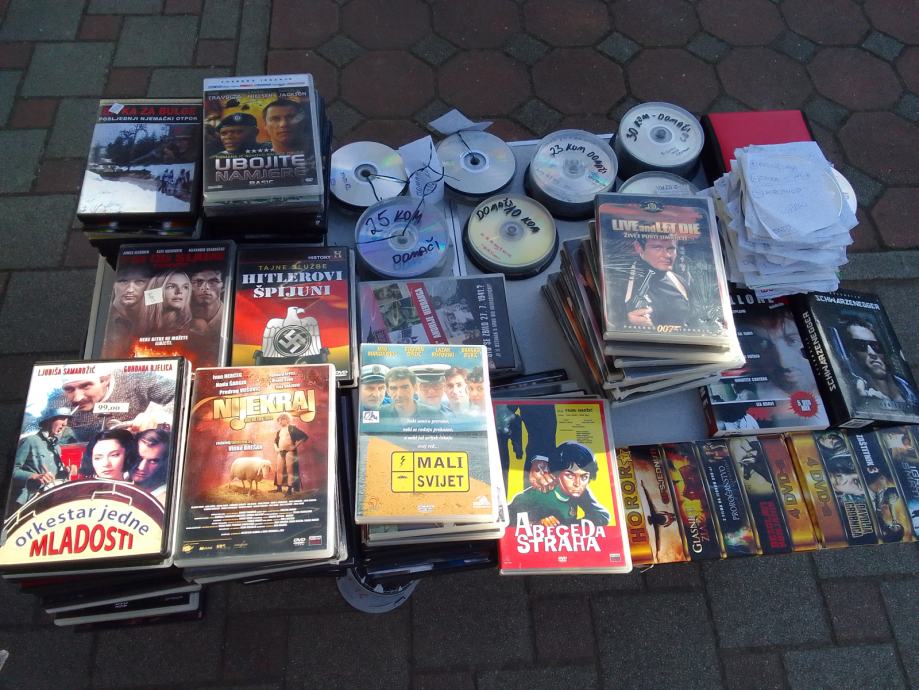 Privatna veća kolekcija DVD,približno oko 470kom,polovica su originali sa original omotima,a druga polovica nasnimani filmovi(znači ok 200 kom jugoslavenskih domaćih filmova samo jednom gledani poslije snimanja,nemaju omote već piše na svakom koji je film)imam i oko 50 kom originalnih jugoslavenskih domaćih filmova sa original kutijama,50 kom stranih filmova sa hrvatskim prijevodom i original omotima,kolekciju 13 DVD James Bond,50kom originalnih crtića,6 komi DVD za učenje engleskog jezika itd...prodajem isključivo cijelu zbirku,dođite i vidite tako je najbolje za obojicu a ne daviti dali imam ovu,pa ovu itd...moguće zamjene za starine i antikvitete,a sve ide za 300€
