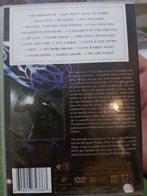 Prodajem DVD Mary. A. Blige- live from Los Angeles u vrlo dobrom stanju. Plačanje na račun ili gotovina.