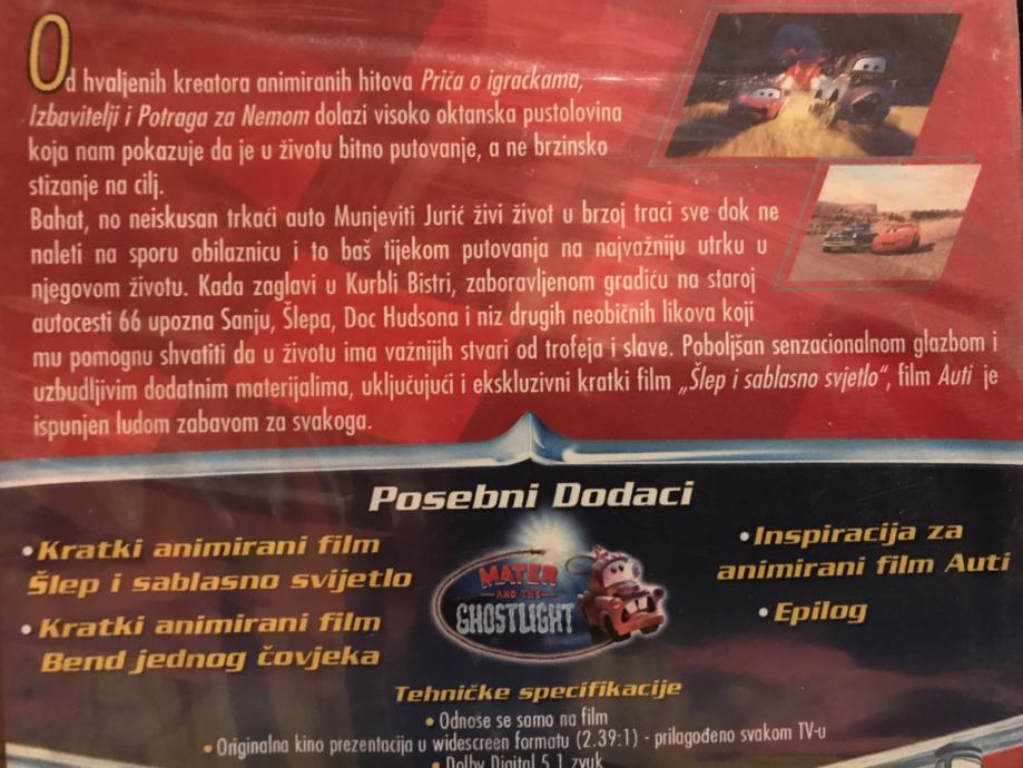7.Pixar klasik iz 2006. na DVD-u: Auti = Cars +specijalni dodaci