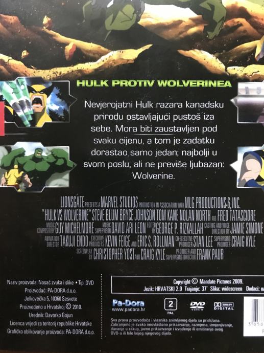 novi i neraspakirani DVD / Hulk protiv Wolverinea / (2009.) / Pula