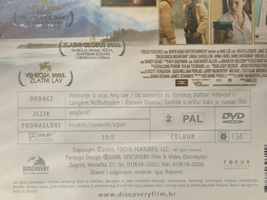 novi i neraspakirani DVD Planina Brokeback = Brokeback Mountain /2005.