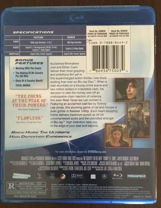 2007. / 122 min / USA / NTSC 1 / ENG / režija: Joel & Ethan Cohen / scenarij Joel & Ethan Cohen, based on the novel by Cormack McCarthy / igraju: Tommy Lee Jones, Javier Bardem / produkcija: Scott Rudin Productions / Feature Film / Crime Drama / Neo-Western 1 disc