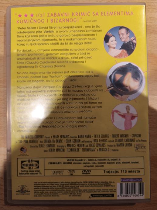 Prodajem rabljeni DVD film Pink Panther u rijetkom hrvatskom izdanju. Film je u dobrom stanju s originalnom ambalažom koja uključuje prednju i stražnju stranu omota. Glavne uloge u ovom kultnom klasiku tumače David Niven i Peter Sellers. Cijena za DVD 25 € plus poštarina. Šaljem nakon vidljive uplate na račun. Preferiram slanje Tiskom. Pogledajte i ostale moje oglase. Veća količina veći popust. Upit preko Njuškala ili Viber i WhatsApp.