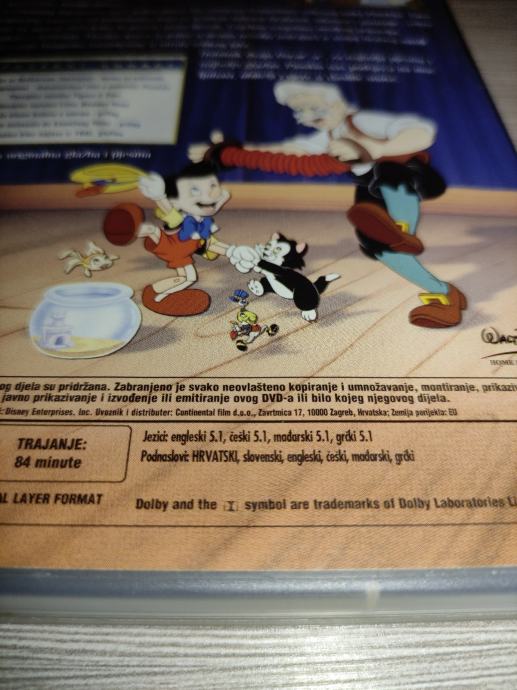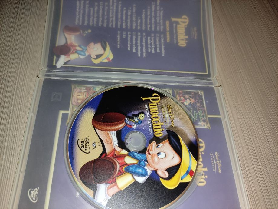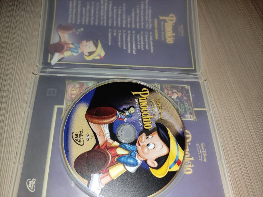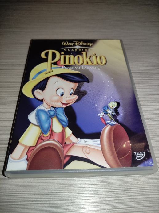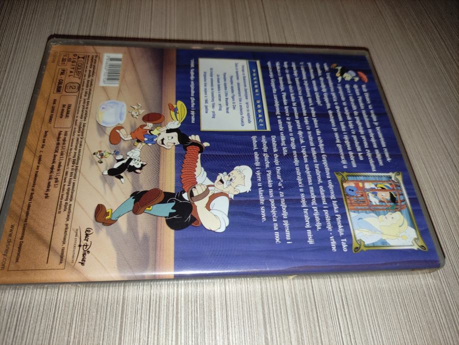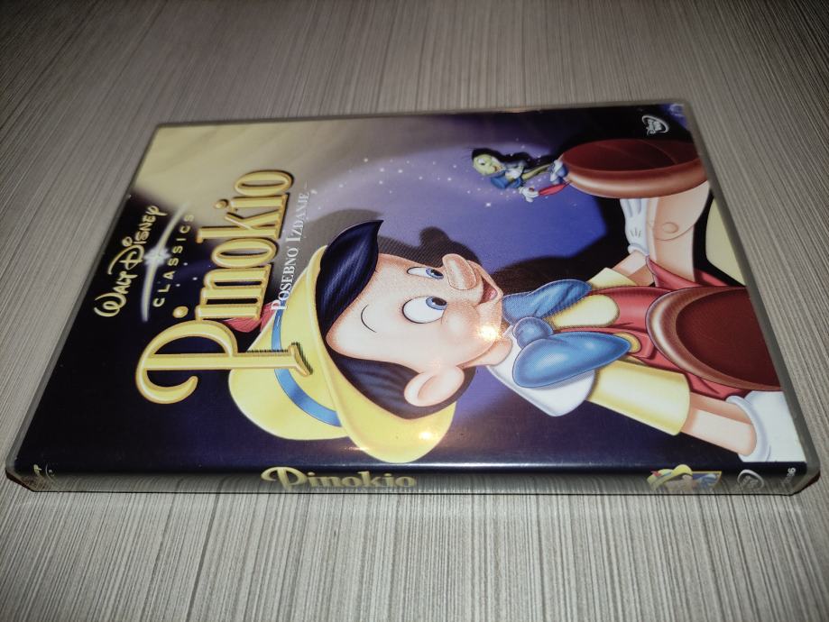 Prodajem očuvani Walt Disney klasik "Pinokio" na DVD-u. Film je dio poznate Disney kolekcije i sadrži originalnu animaciju o drvenom lutku koji želi postati pravi dječak. DVD dolazi u originalnom pakiranju s očuvanom naslovnicom.