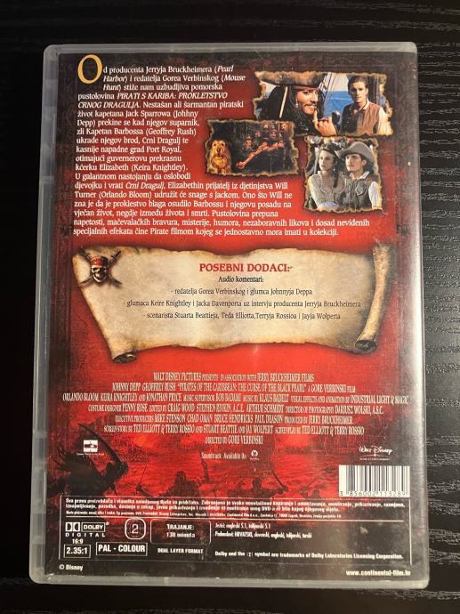 Pirati s Kariba _ Prokletstvo crnog dragulja DVD original. 4 fotografije su u oglasu. Cijena je 5 EUR za osobno preuzimanje u Popovači ili Ivanić Gradu. Troškovi slanja su dodatna 3 EUR Tiskom ili Poštom za unaprijed uplatu na račun ili 5 EUR za plaćanje pouzećem.