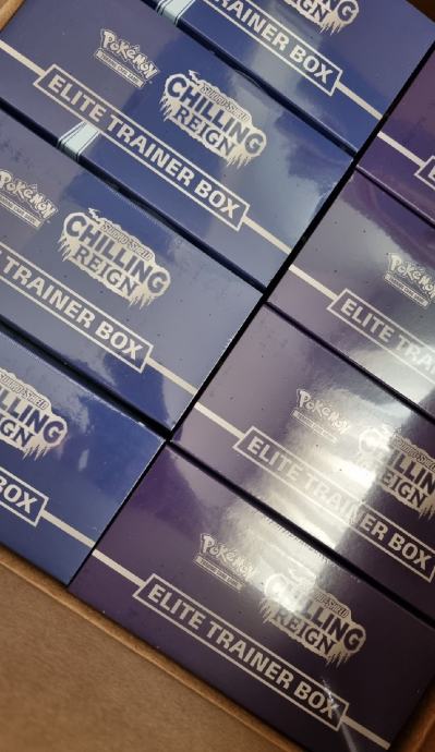 Prodajem 13 komada Pokemon Chilling Reign ETB. Sve je original saled.