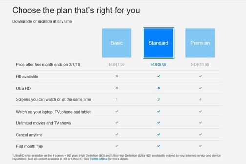 Moguće biranje između BASIC, STANDARD i PREMIUM računa.