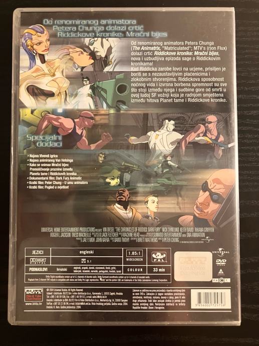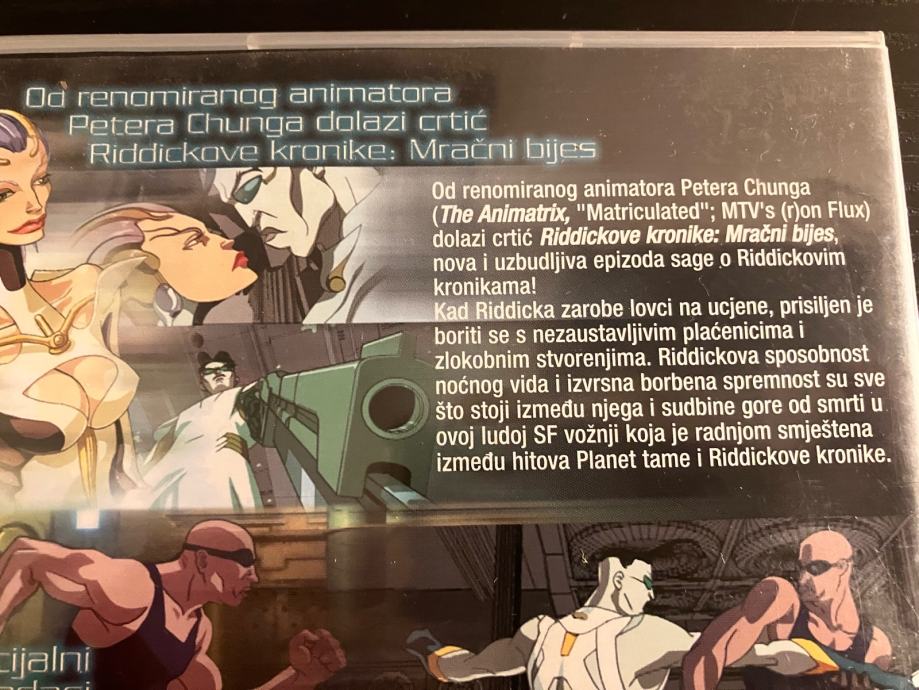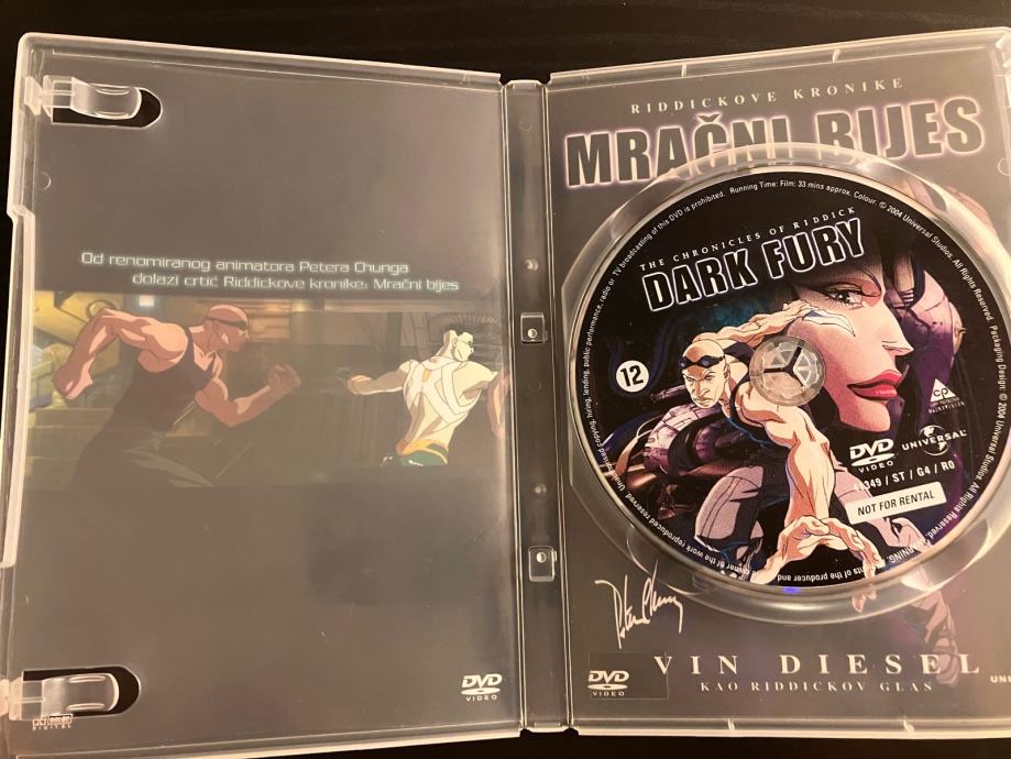 Riddickove kronike: Mračni bijes - DVD original. 5 fotografija je u oglasu. Cijena je 8 EUR, a Troškovi slanja su dodatna 3 EUR Tiskom ili 5 EUR Poštom za unaprijed uplatu na račun ili 6 EUR za plaćanje pouzećem. Slanje s Box Now je 2 EUR. Pakiram tako da je sigurno u transportu. Odgovaram na pozive, poruke putem Njuškala, SMS, Viber…