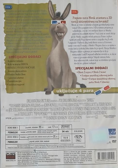 Shrek (Dvostruko izdanje, 2 DISC-a, DVD film, 3D film, HR izdanje, HR podnaslovi) ( 25€ )
