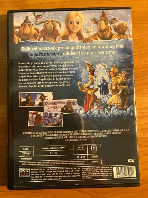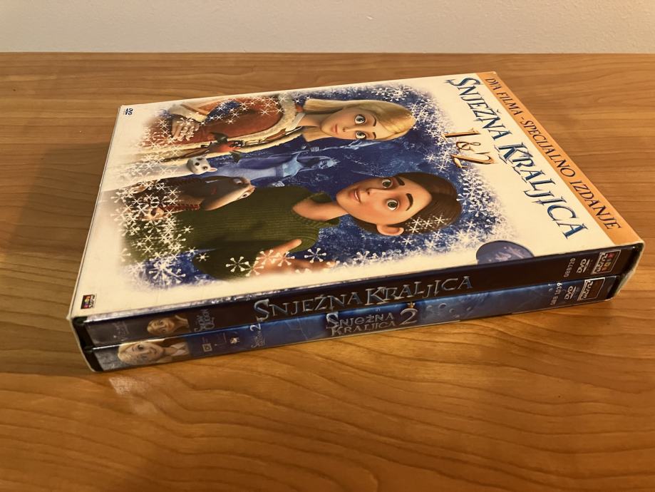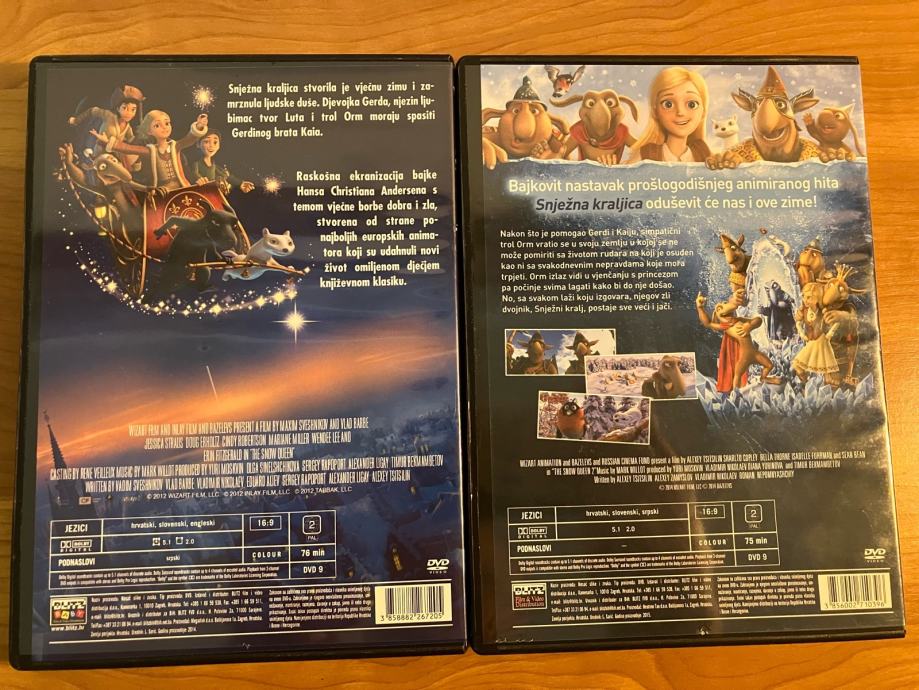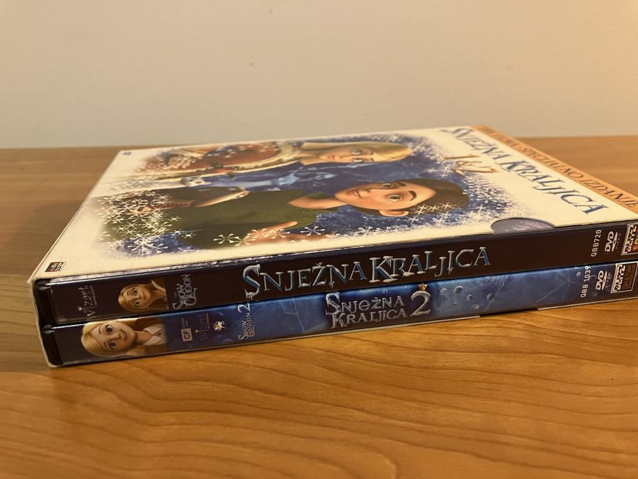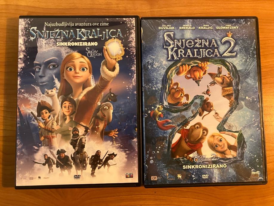 Snježna Kraljica 1 i Snježna Kraljica 2, orginalni DVD-i, specijalno izdanje, komplet sa slip coverom. Sinhronizirano na hrvatski. Odlično stanje, 11 fotografija je u oglasu.Cijena je 8 EUR za osobno preuzimanje u Popovači ili Ivanić Gradu. Troškovi slanja su dodatna 4 EUR Tiskom ili 5,5 EUR Poštom za unaprijed uplatu na račun ili 7 EUR za plaćanje pouzećem. Pakiram tako da je sigurno u transportu.
