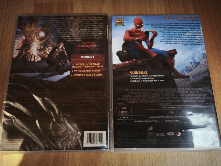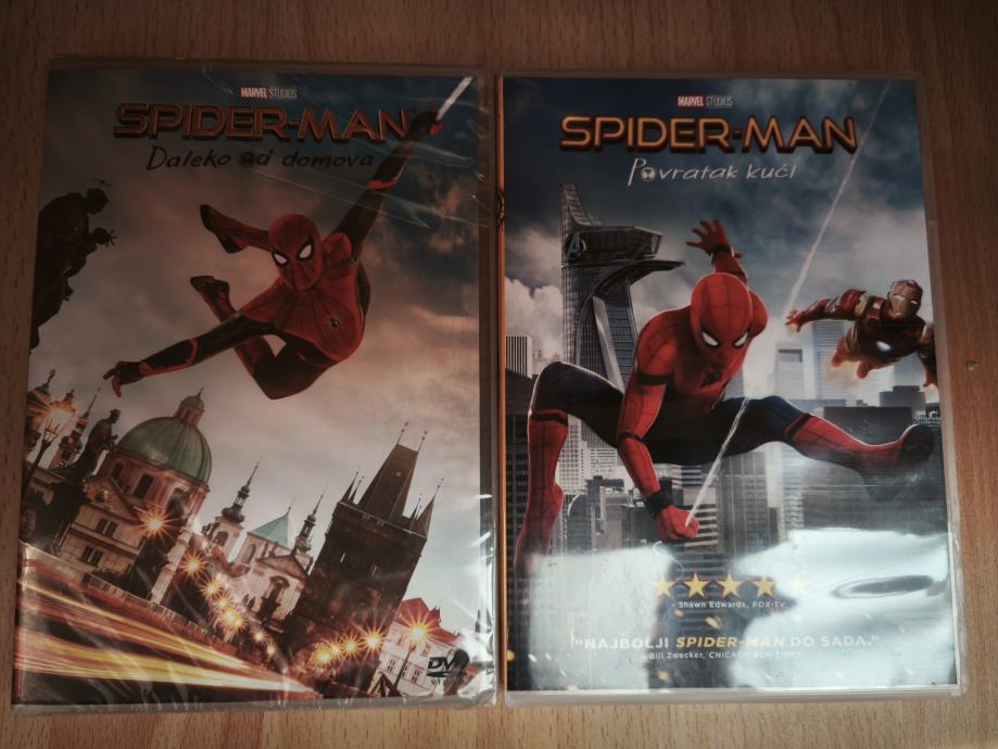 Prodajem original DVD filmove Spiderman Povratak kući i Spiderman daleko od kuće NOVO u celofanu povratak kući jednom pogledan. Hrvatski titlovi.Cijena za komplet 40 € plus poštarina. Po komadu Povratak kući 20€ a Spiderman daleko od kuće 30€. Šaljem nakon vidljive uplate na račun. Upit preko Njuškala ili Viber i WhatsApp. Pogledajte i ostale moje oglase. Veća količina veći popust.