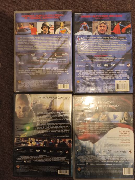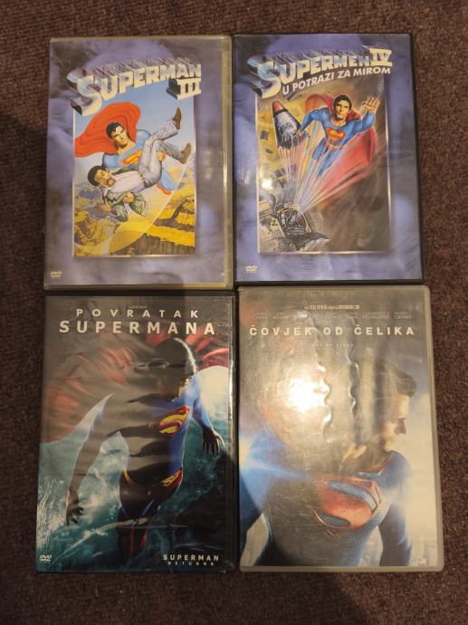 Prodajem rabljenu Superman DVD kolekciju koja uključuje četiri klasična filma o omiljenom superheroju. Filmovi su u dobrom stanju, a kolekcija sadrži "Superman III", "Superman IV: U potrazi za mirom", "Povratak Supermana" i "Čovjek od čelika". Cijena 40 €. Šaljem nakon vidljive uplate na račun. Preferiram slanje Tiskom ili Box now paketomata. Pogledajte i ostale moje oglase. Veća količina veći popust.
