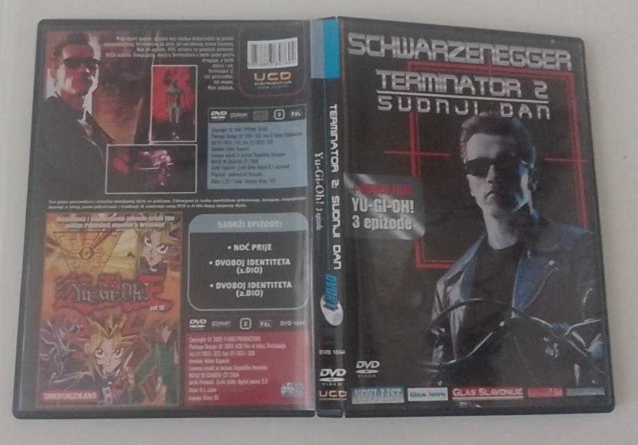 Prodajem DVD s dvije stvari na jednom disku – film Terminator 2: Sudnji dan s Arnoldom Schwarzeneggerom te bonus sadržaj u obliku tri epizode Yu-Gi-Oh! animirane serije iz fantastičnog žanra.