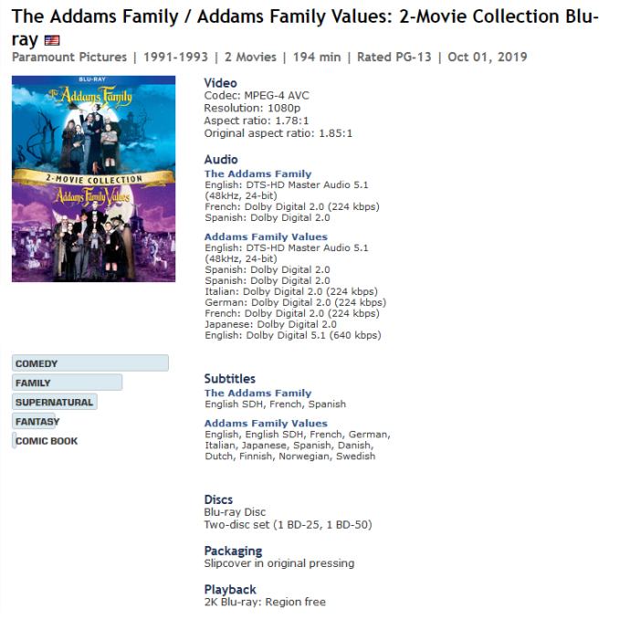 The Addams Family 1 & 2 (Obitelj Addams, 1991-1993) Blu Ray Collection