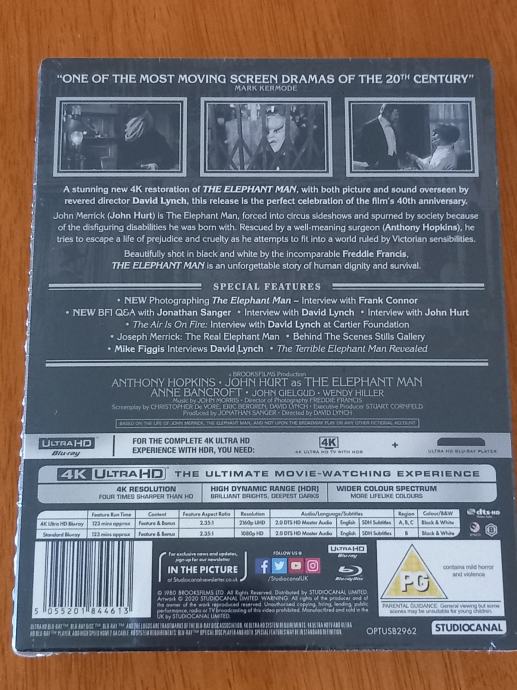 The Elephant Man 4K Zavvi Steelbook Novo Zapakirano
