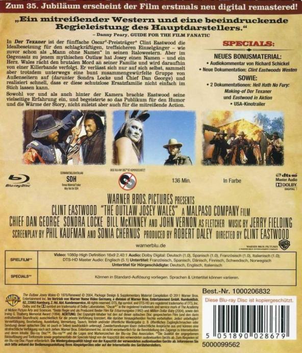 Starring: Clint Eastwood, Chief Dan George, Sondra Locke, Bill McKinney, John Vernon, Paula Trueman
