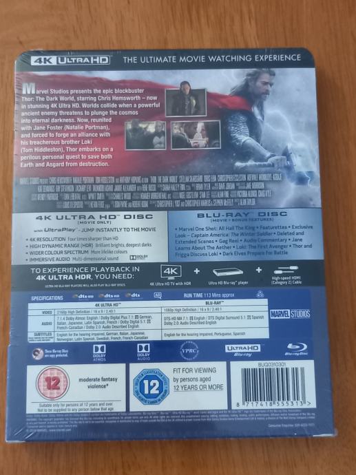 Thor The Dark World Zavvi 4K Steelbook Novo Zapakirano.