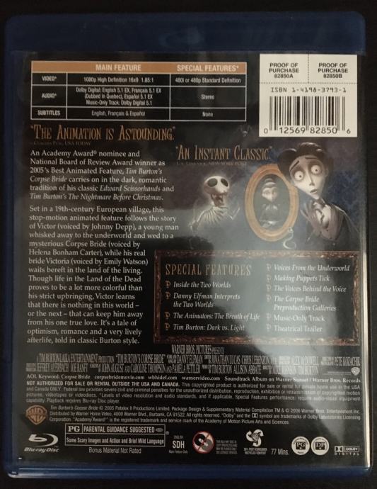 2005. / 77 min / USA / NTSC 1 / ENG / režija: Tim Burton / scenarij: John August / produkcija: Tim Burton Productions / Animated Film / Fantasy / Dark Comedy / 1 disc