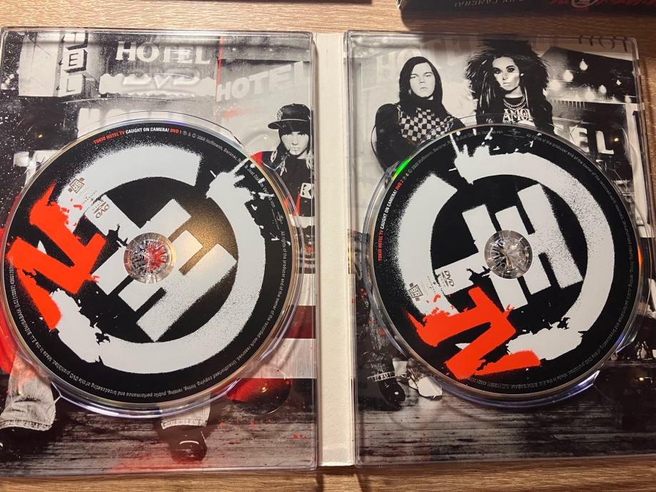Tokio Hotel TV – Caught on Camera - Trostruki DVD original. Uključuje poster i knjižicu grupe Tokio Hotel. Očuvano-12 fotografija je u oglasu. Cijena je 16 EUR za osobno preuzimanje u Popovači, a troškovi slanja su dodatna 3 EUR Tiskom ili 4 EUR Poštom za unaprijed uplatu na račun ili 6 EUR za plaćanje pouzećem. Box Now slanje je 2 EUR. Pakiram tako da je sigurno u transportu. Odgovaram na pozive, poruke putem SMS, Njuskalo, Viber…