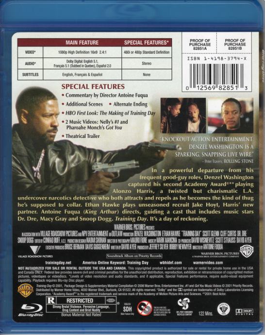 Training Day 2001 Blu-ray (Denzel Washington, Ethan Hawke)
