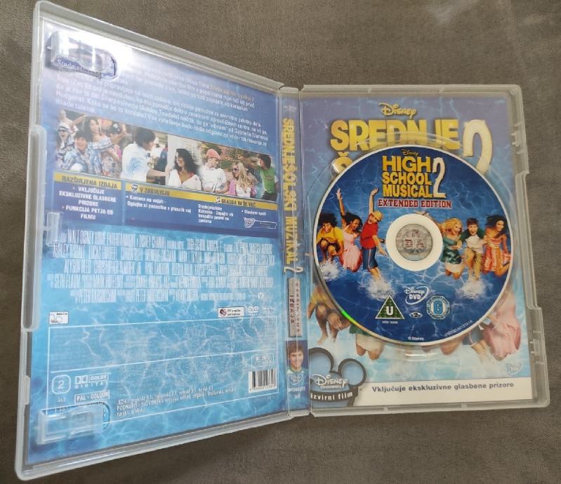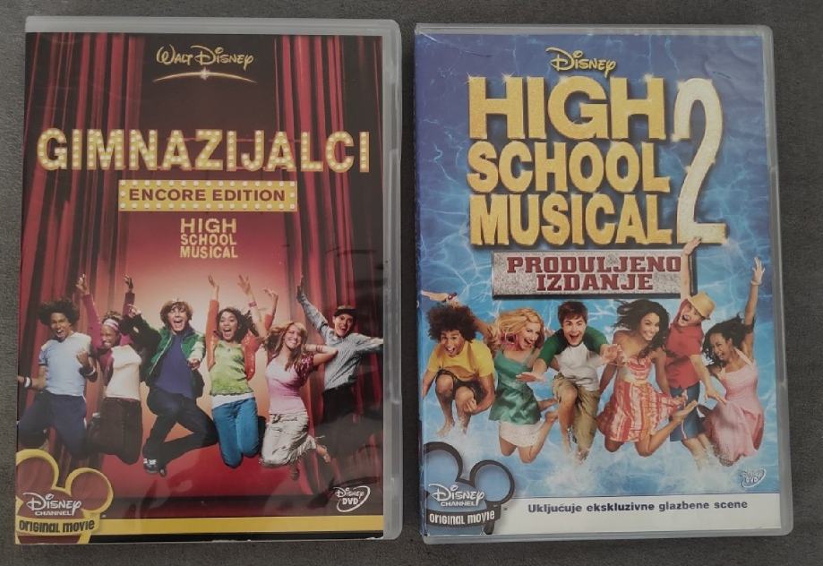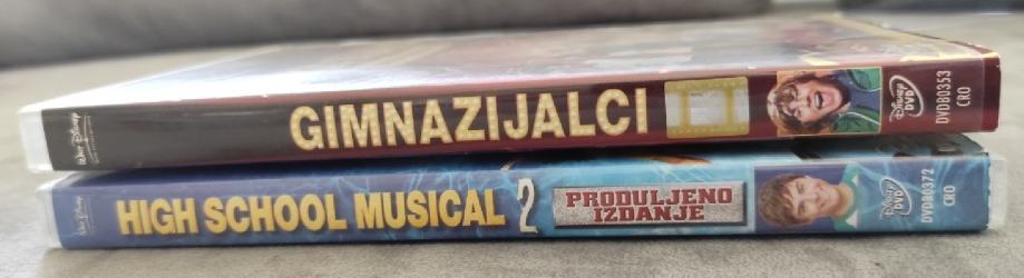 Originalni Walt Disney, Disney Channel, Disney DVD filmovi Gimnazijalci/High School Musical 1. i 2. dio, sa prijevodom na hrvatski jezik.