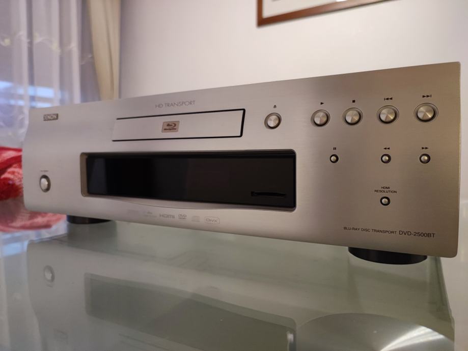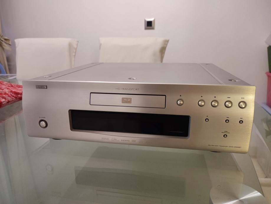 Na prodaju Denon DVD-2500BT, vrhunski blu ray player - HD transport, impresivnih dimenzija i kvalitete te mase od 10 kg. Koncepcija bez nepotrebnih dekodera koje već imate u svom receiveru. Trostruko oklopljeno kućište. Vrlo tihi i super precizni mehanizam za uvlačenje diska, dodatno oklopljen. Prvi sam vlasnik uređaja na kojem nema nikakvih oštećenja i nalazi se u nepušačkom okruženju, cijena novoga je bila 7500 kn. Originalni daljinski gotovo nekorišten, u funkciji je bio daljinski od receiveru. Nagrađen sa 5 zvjezdica od What Hi-Fi?.