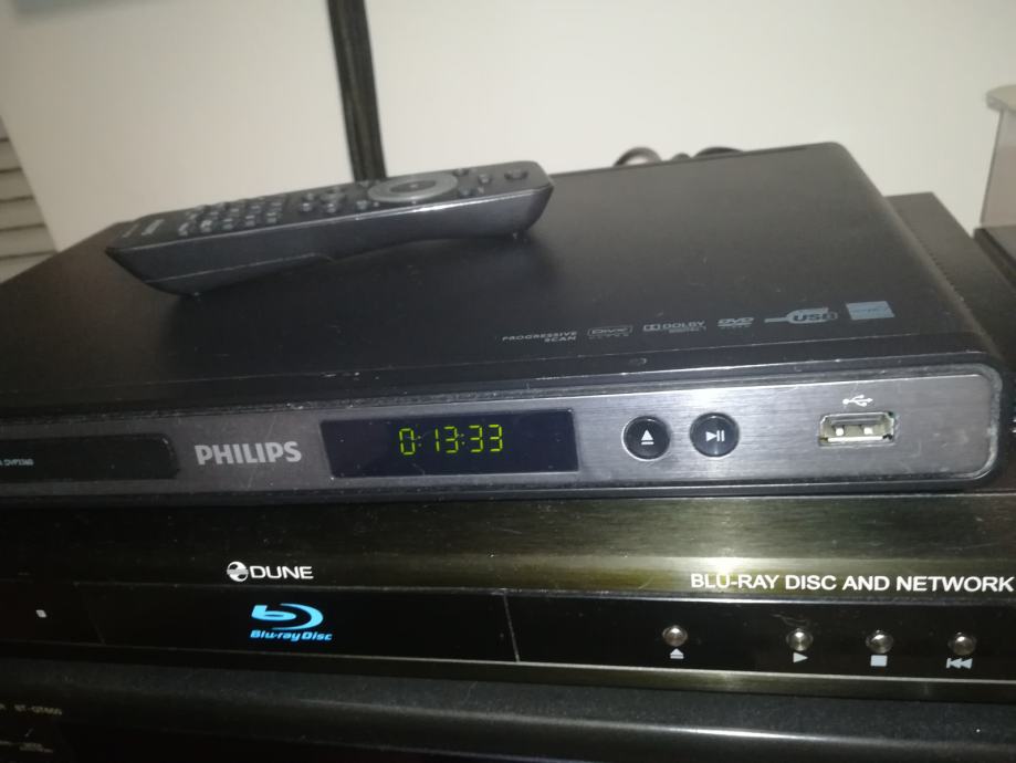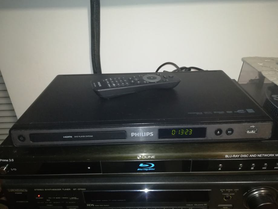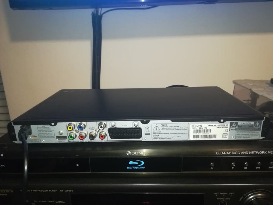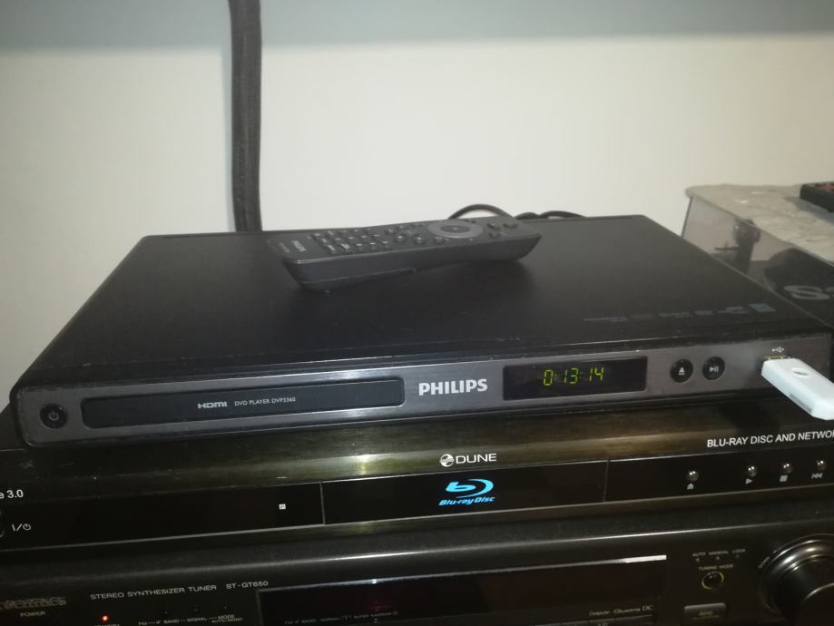 Tehnički ispravan i vrlo očuvan DVD player s daljinskim upravljačem. HDMI i SCART izlaz, USB ulaz za reprodukciju Divx i MP3 formata.