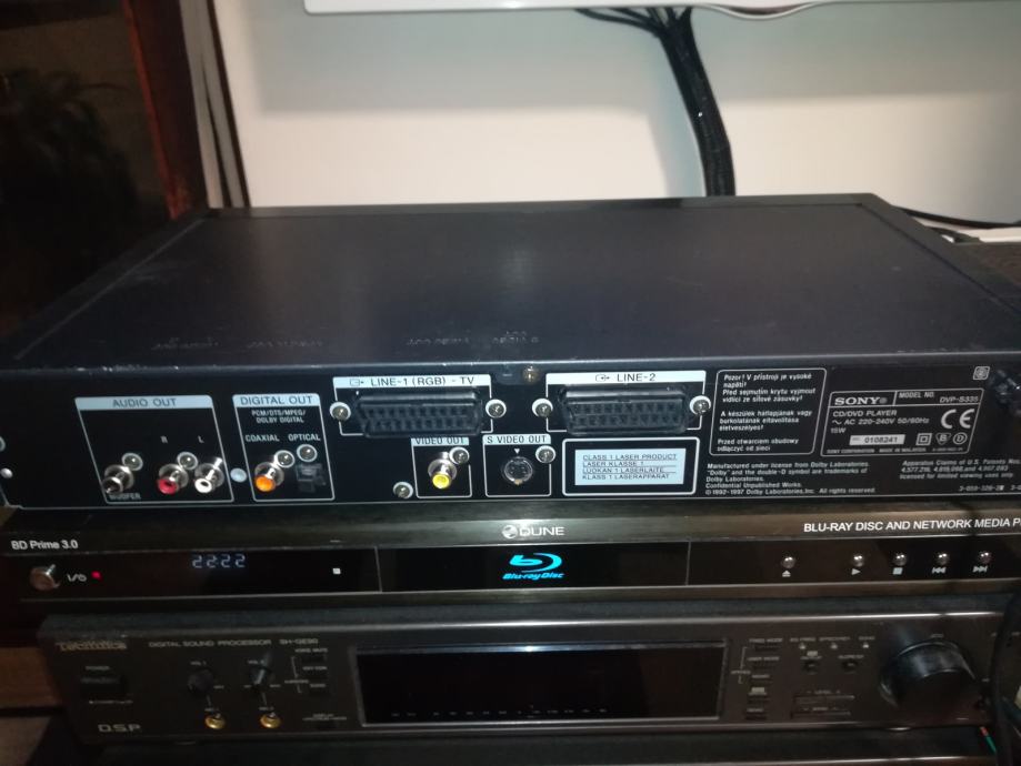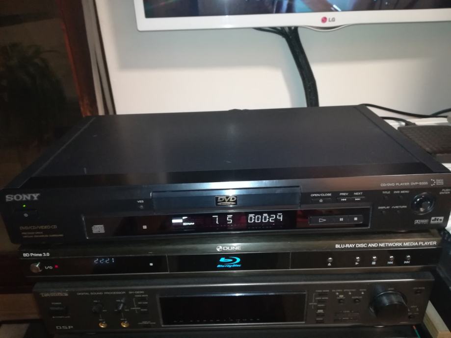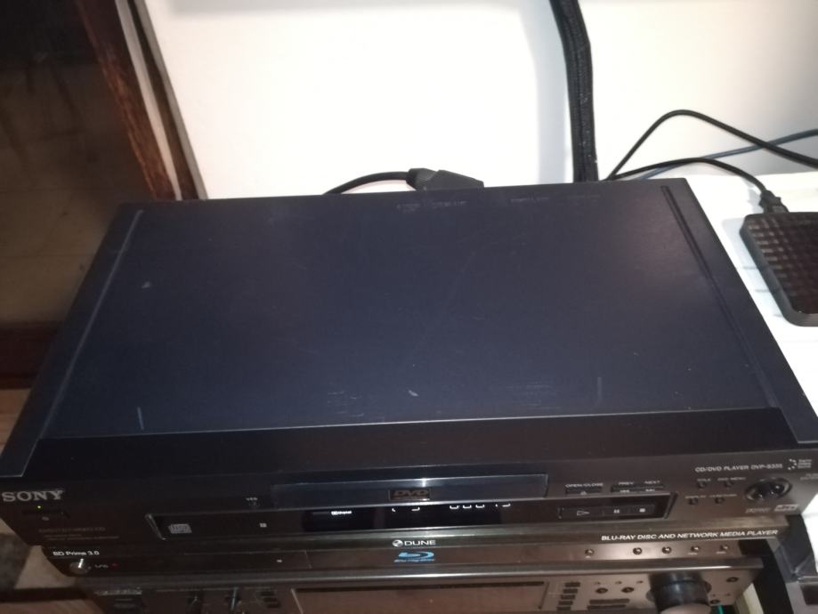 Tehnički ispravan i vrlo uščuvan DVD player Sony. Uredno reproducira originalne DVD i CD, te DVD-R medije. Ne reproducira CD-R medije.
