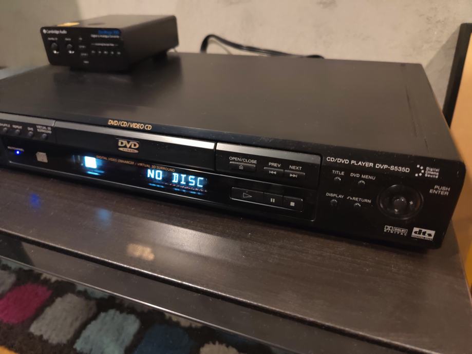 Prodaje se rabljeni, potpuno ispravni i očivani SONY DVP-S535D DVD player zajedno s novim, nekorištenim daljinskim upravljačem.