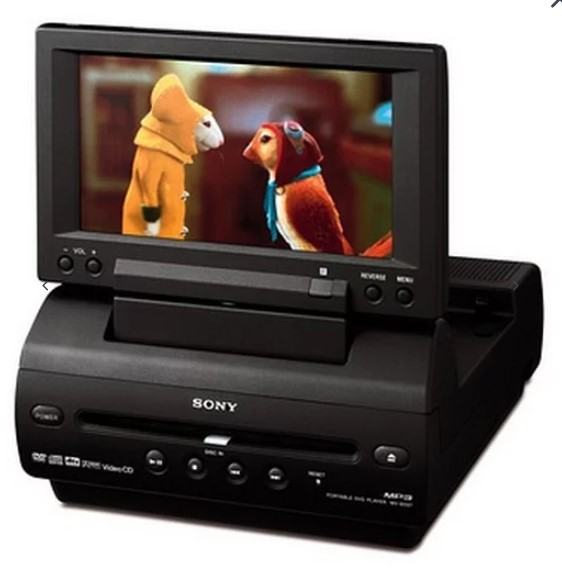 Sony portabl DVD player ISPRAVAN i nekorišten, s priborom prilagođen i za montažu na stražnjem dijelu vozačevog ili suvozačevog sjedala ili naslona za glavu u automobilu.