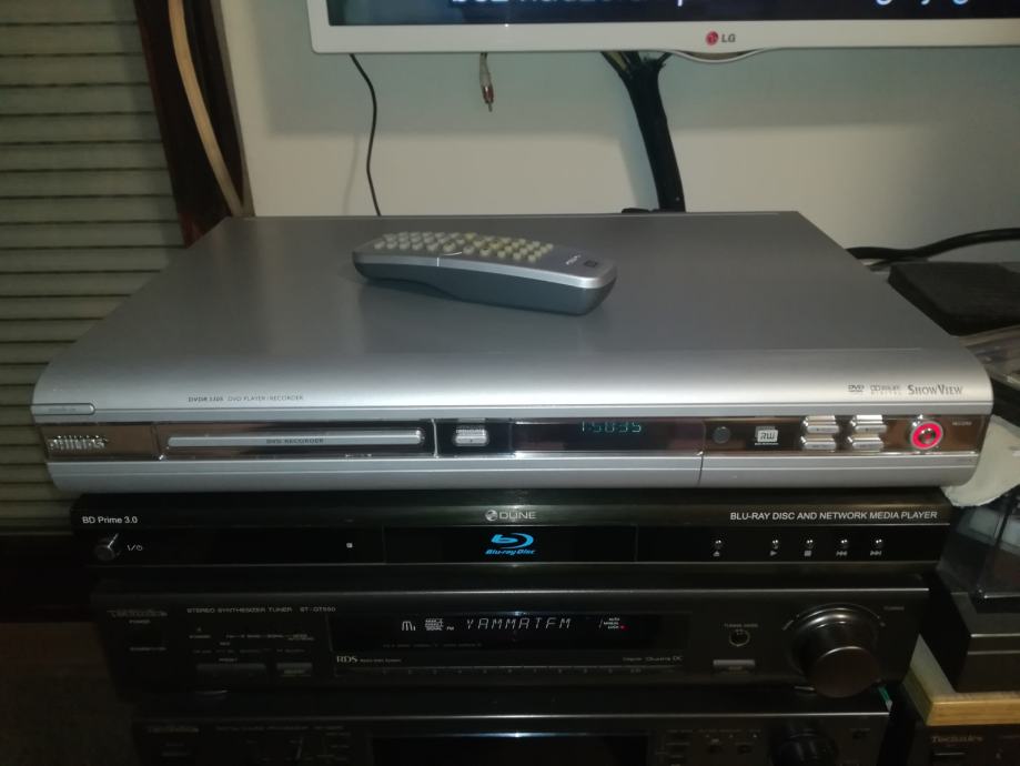 Tehnički ispravan i solidno uščuvan DVD recorder Philips s daljinskim upravljačem. Uredno reproducira, snima i finalizira DVD-R medije.