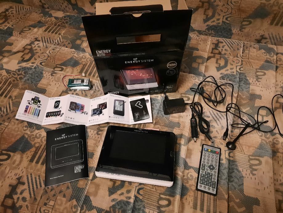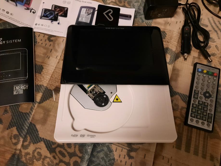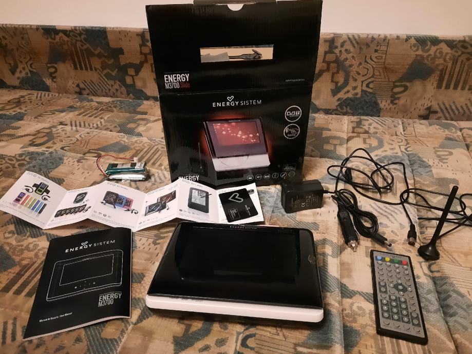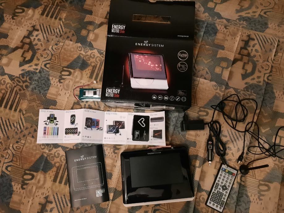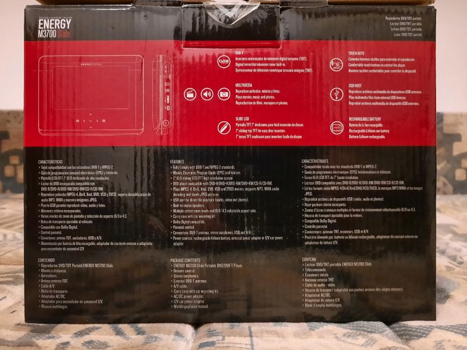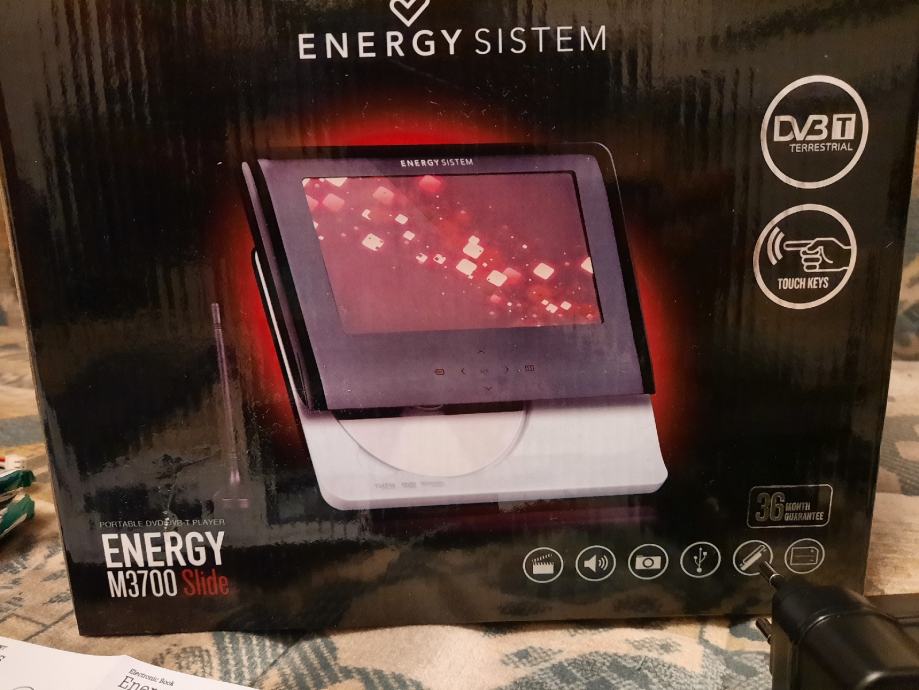 ENERGY M3700 TV SLIDE, prijenosni DVD player + DVB-T reciver, LCD 7 sliding-top TFT za lakše ubacivanje cd-a, tipke osjetljive na dodir, sliding-top TFT, reprodukcija MPEG-4, DivX, Xvid, DVD, VCD and SVCD movies, supports MP3, WMA, JPEG, USB ulaz, stereo zvučnici, vanjska DVB-T antena, torba, punjač za 12 i 220V, moguće napajanje putem auto-punjaća, slušalice.