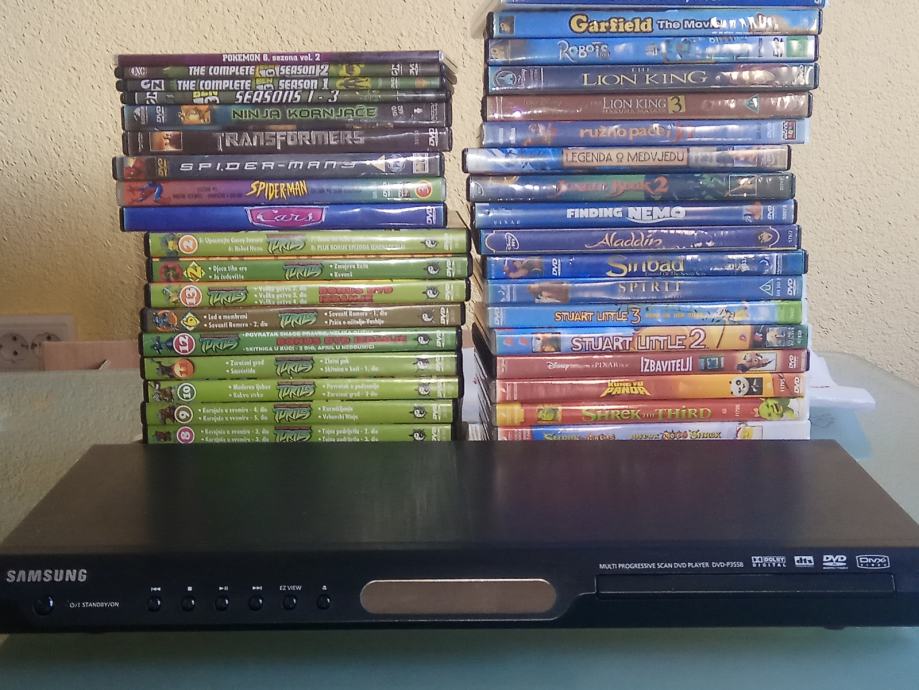 Prodajem 30-tak crtanih i igranih filmova za djecu (na fotografiji). Cijena 90,00 kn. Lokacija Osijek.