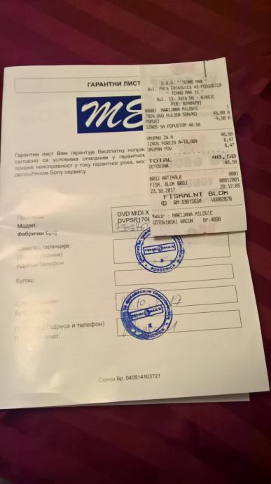 Prodajem novi CD/DVD player SONY SR170, kupljen u Crnoj Gori (s njihovim računom i garancijom), cijena je 200 kn (plus poštarina).