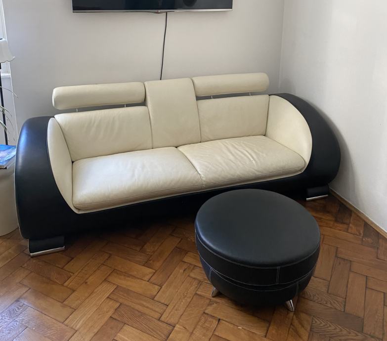 Na prodaju kvalitetan talijanski kožni kauč marke Bellini s odgovarajućim tabureom.