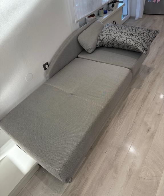 Damski ležaj. Dimenzije 90 x 145 cm. Može se rasteći te je prikladan za spavanje. Ima i spremnik. Korišten jako kratko, bez oštećenja.