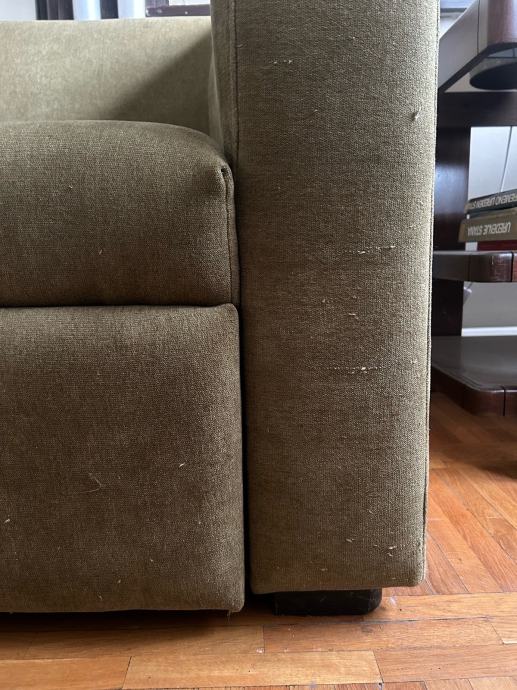 Dvosjed zagasito zelene boje s ladicom za pohranu.