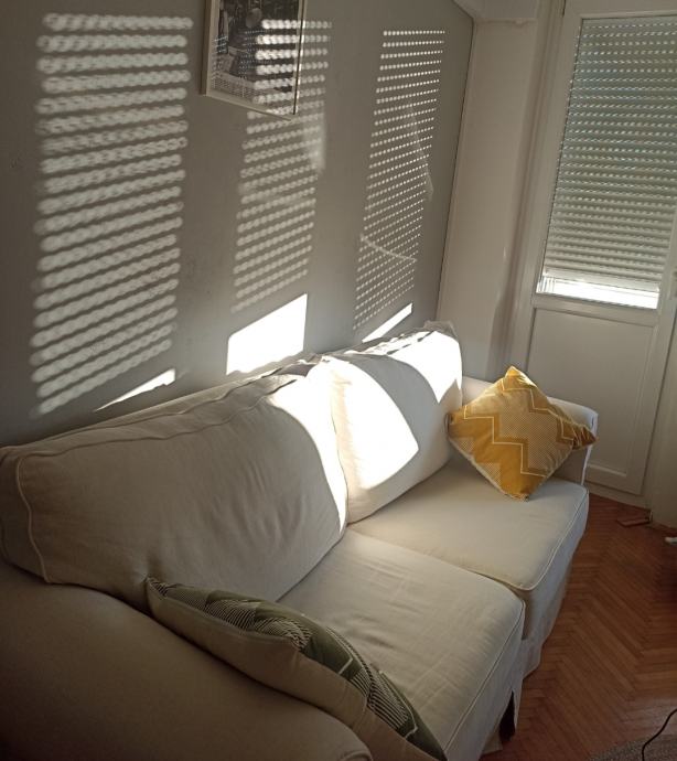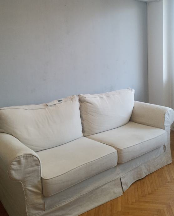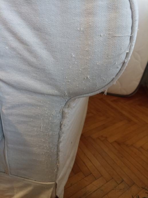 Dvosjed bež boje, potrebo je čišćenje, ima jednu žućkastu fleku, i s obje bočne strane ogreban od mačaka, ali inače vrlo udoban, s krevetom na razvlačenje. Duljina oko 210 cm, dubina oko 90 cm. Potrebno doći osobno po njega, 3.kat bez lifta.