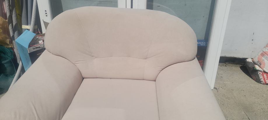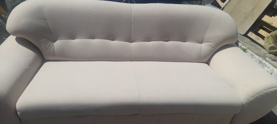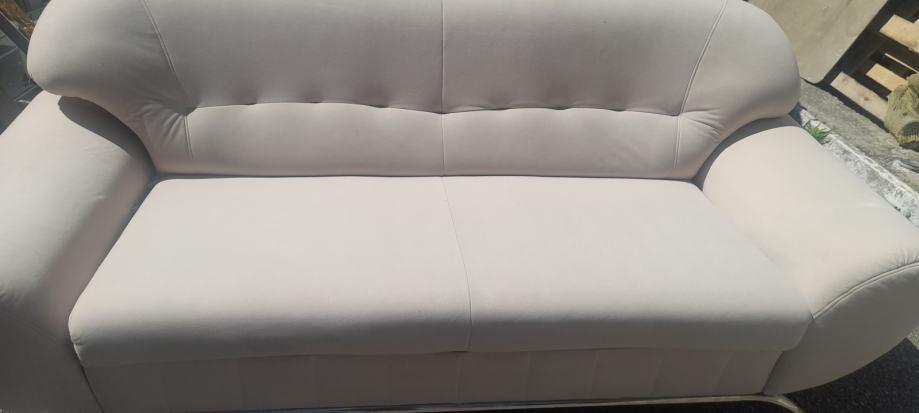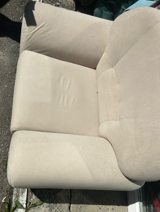 Tkanina, ne razvlači se. Nogica se treba zašarafiti od dvosjeda. Ništa ulegnuto , poderano i sl. Sjedeći diio duž 140 cm šir 56cm.Hino.. višak