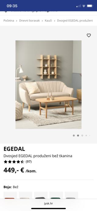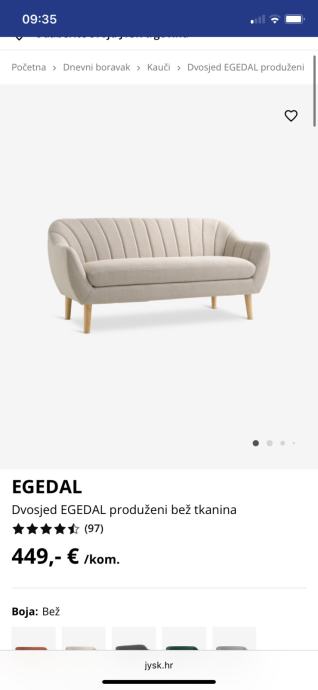 Nov nekorišten Jysk edegal prošireni dvosjed, kupljen prije nekoliko mjeseci ali nije korišten jer se nije uklapao u prostor. Sad samo stoji doma, ne koristi se pa ga prodajemo. Plaćen 450€. Širina: 170 cm, Visina: 82 cm, Dubina: 81 cm