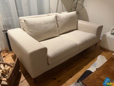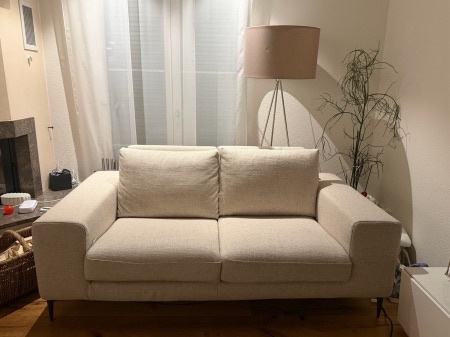 Prodajem novi dvosjed marke Marsignano presvučen u bouclé tkaninu krem boje. Dimenzije su 196 x 109 cm, cijena kupnje bila je 1200 €. Dolazi s dva jastuka za naslone.