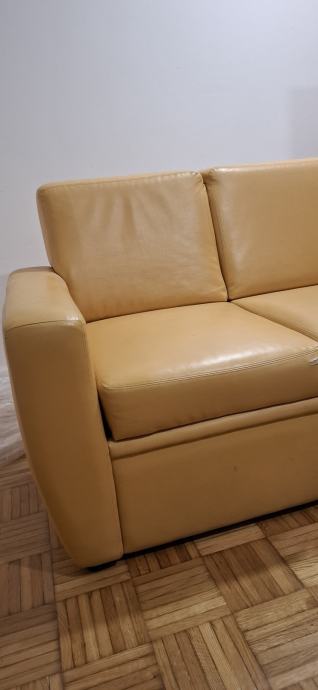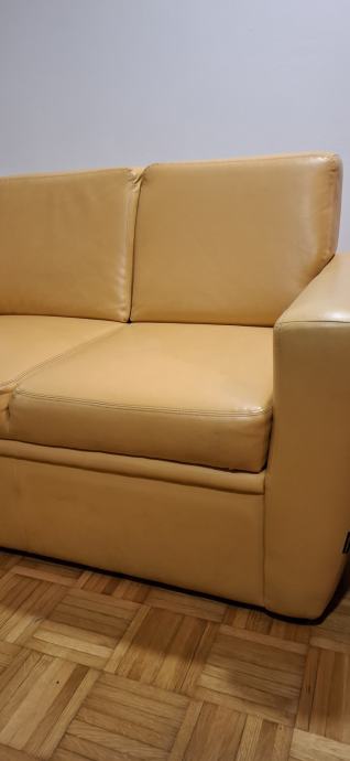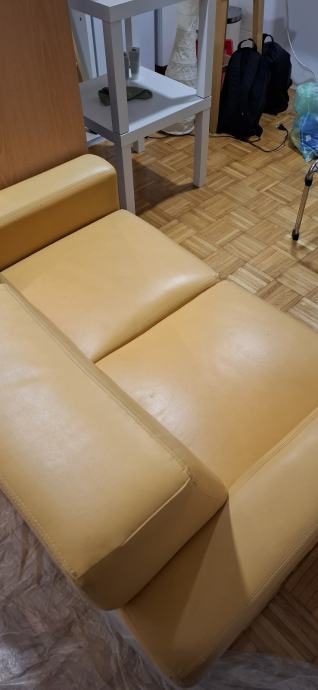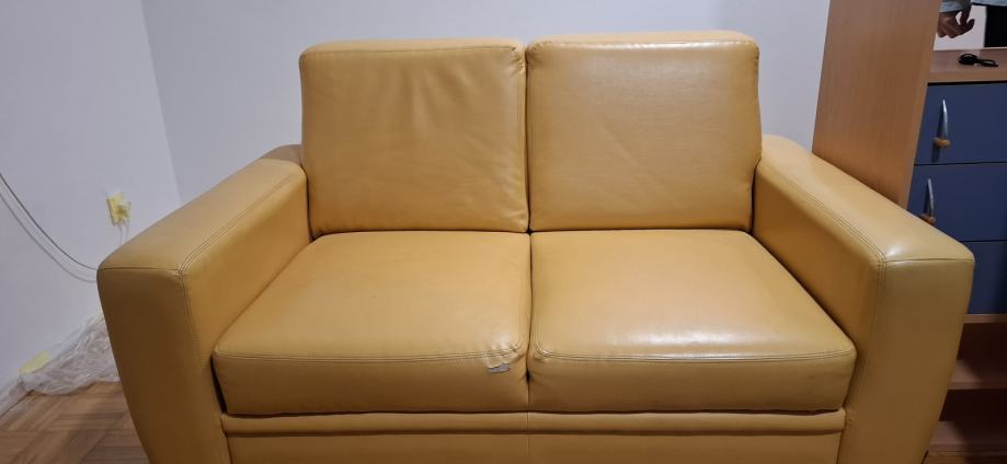 Udobni rabljeni dvosjed u boji senfa, u odličnom stanju osim jednog manjeg oštećenja na sjedištu, vidljivog na slici. Besplatan uz uvjet osobnog preuzimanja na drugom katu u Kvintičkoj ulici.