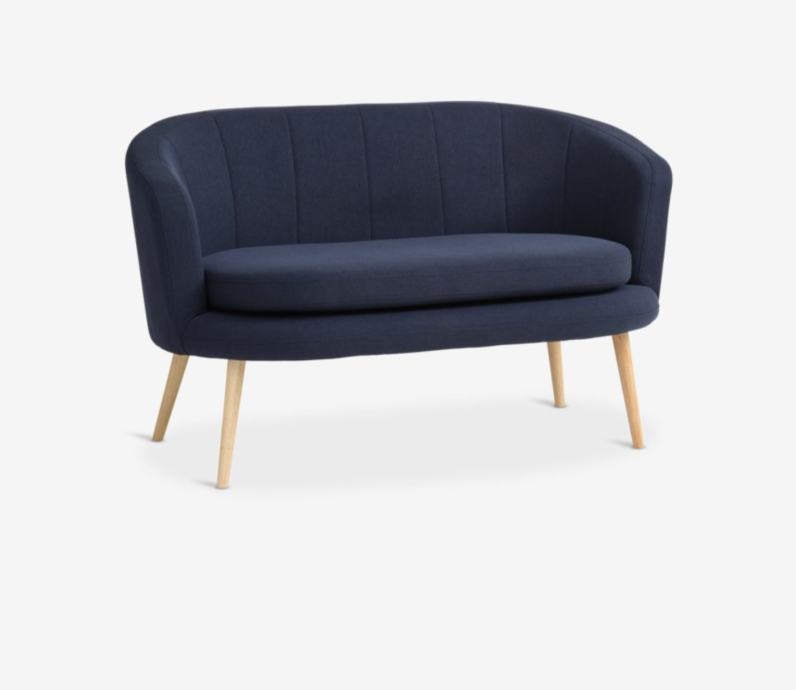 Dvosjed od tkanine. Sjedište i naslon od pjene. Noge od masivnog drveta. Š137xV78xDub76 cm