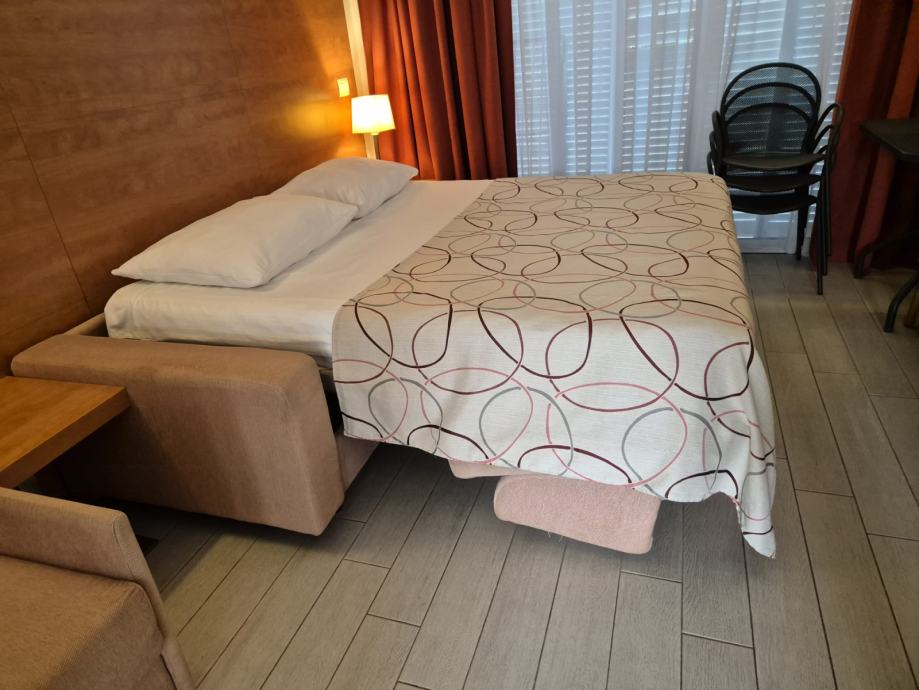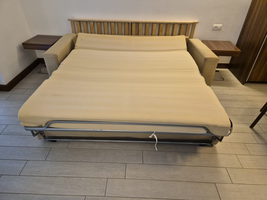 Rasklopljen kauč: dužina 198 a širina ležaja 155 cm.